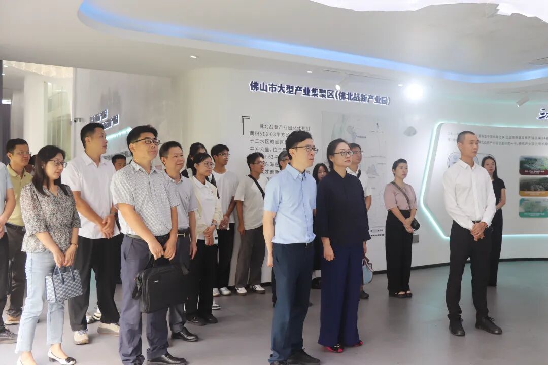活动首站聚焦乐平镇重点产业平台——大同湖战新产业园。广东药科大学正处级组织员潘育方、医药信息工程学院党委书记石小玉、医药信息工程学院院长蔡永铭等一行与三水区委常委、乐平镇党委书记张志彬、三水区教育局副局长于伟就及乐平镇其他领导班子成员共同参观大同湖战新产业园招商中心,详细了解园区规划布局、产业定位及企业发展需求。
