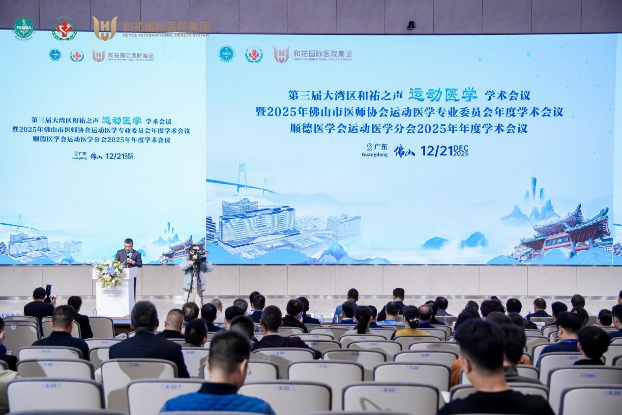 12月21日,“第三届大湾区和祐之声运动医学学术会议暨2025年佛山市医师协会运动医学专业委员会年度学术会议暨顺德医学会运动医学分会2025年年度学术会议”在佛山市顺德区和祐医院学术报告厅开幕。本次会议由佛山市医师协会、顺德医学会联合主办,和祐医院承办,汇聚了来自北京、广州、深圳、天津、昆明等全国各地近四十位运动医学领域的顶尖专家及近百名相关专业医务人员,共同围绕运动医学的前沿技术、临床实践与学科发展展开深入研讨。