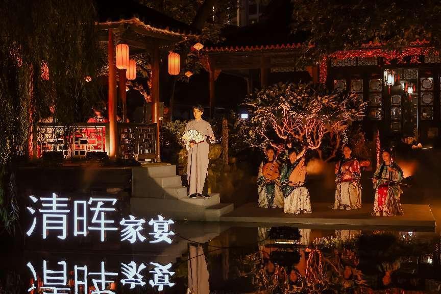 四大版本各具特色、相辅相成。其中,“园林极致”主题以清晖园为唯一载体,是家宴美学与园林艺术的极致融合。体验涵盖“入园寻幽、移步换景、赏艺品宴”全流程,菜品灵感取自园中四时风物,完整复原龙氏家族宴客场景,是一场“夜游、夜演、夜宴”三位一体的沉浸式文化盛宴。