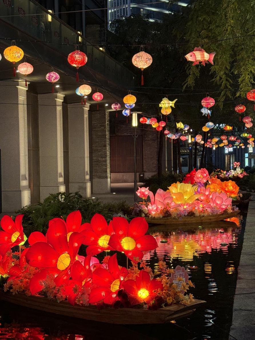 为契合春节文旅消费的需求,顺德华侨城欢乐海岸PLUS以“年味营造”“水上花市”“岭南吉市”“岭南年味”为主体框架,精心构建一个集视觉震撼、文化体验、消费转化于一体的沉浸式新春场景。其中,入口处5米高的“马上鸿运来”主题装置、曲水湾“水上花市”及非遗巨型鱼灯,共同营造出浓厚年节氛围。