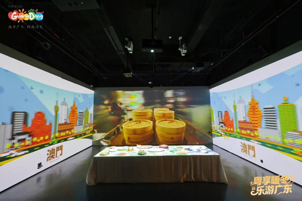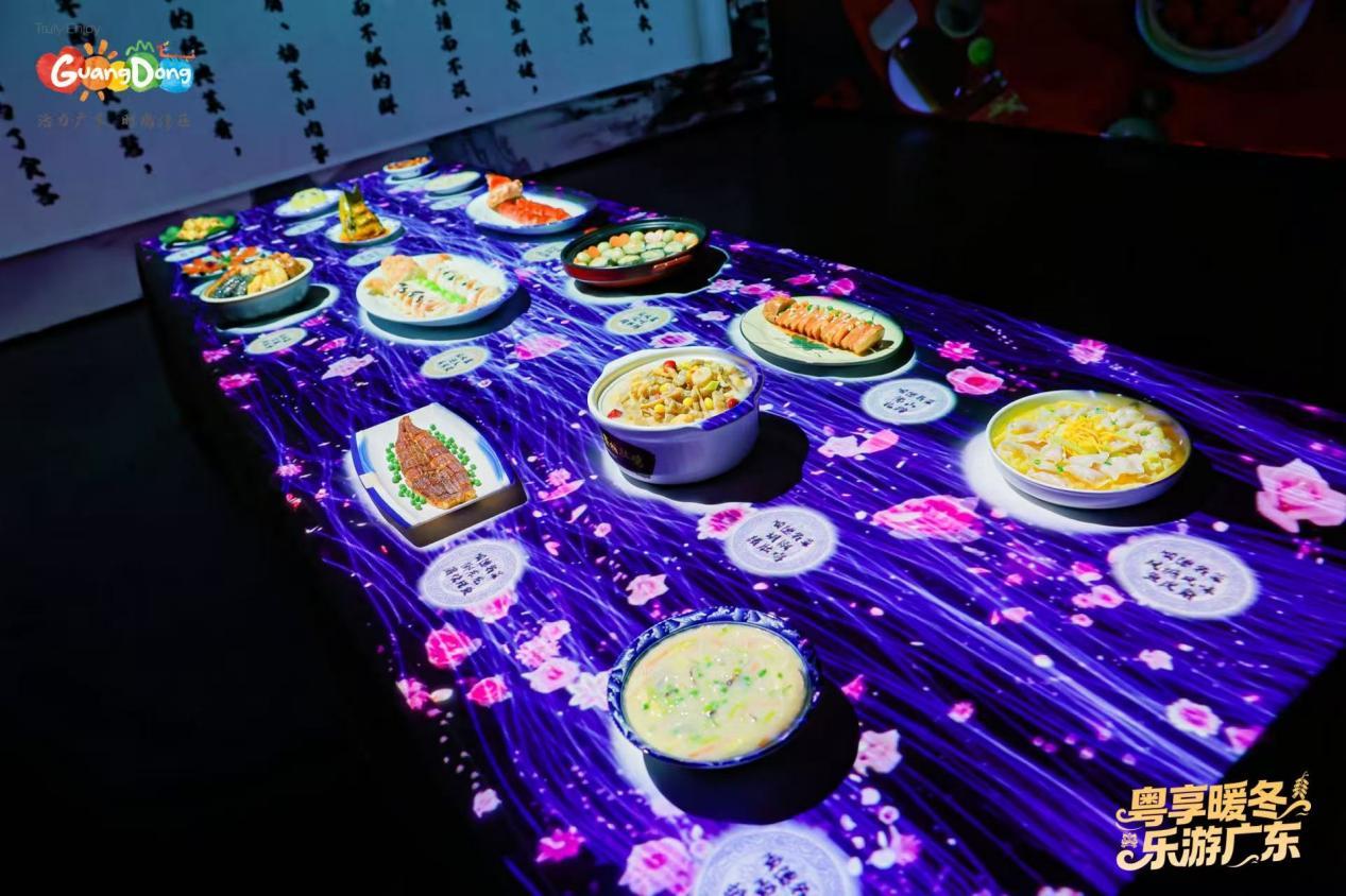 值得一提的是,现场还通过投影技术动态呈现顺德、潮汕、客家及澳门等地特色菜系,并以“九大簋”传统宴席展示粤菜文化底蕴,美食博物馆中的长桌宴琳琅满目,生动传递“美食广东”的魅力。