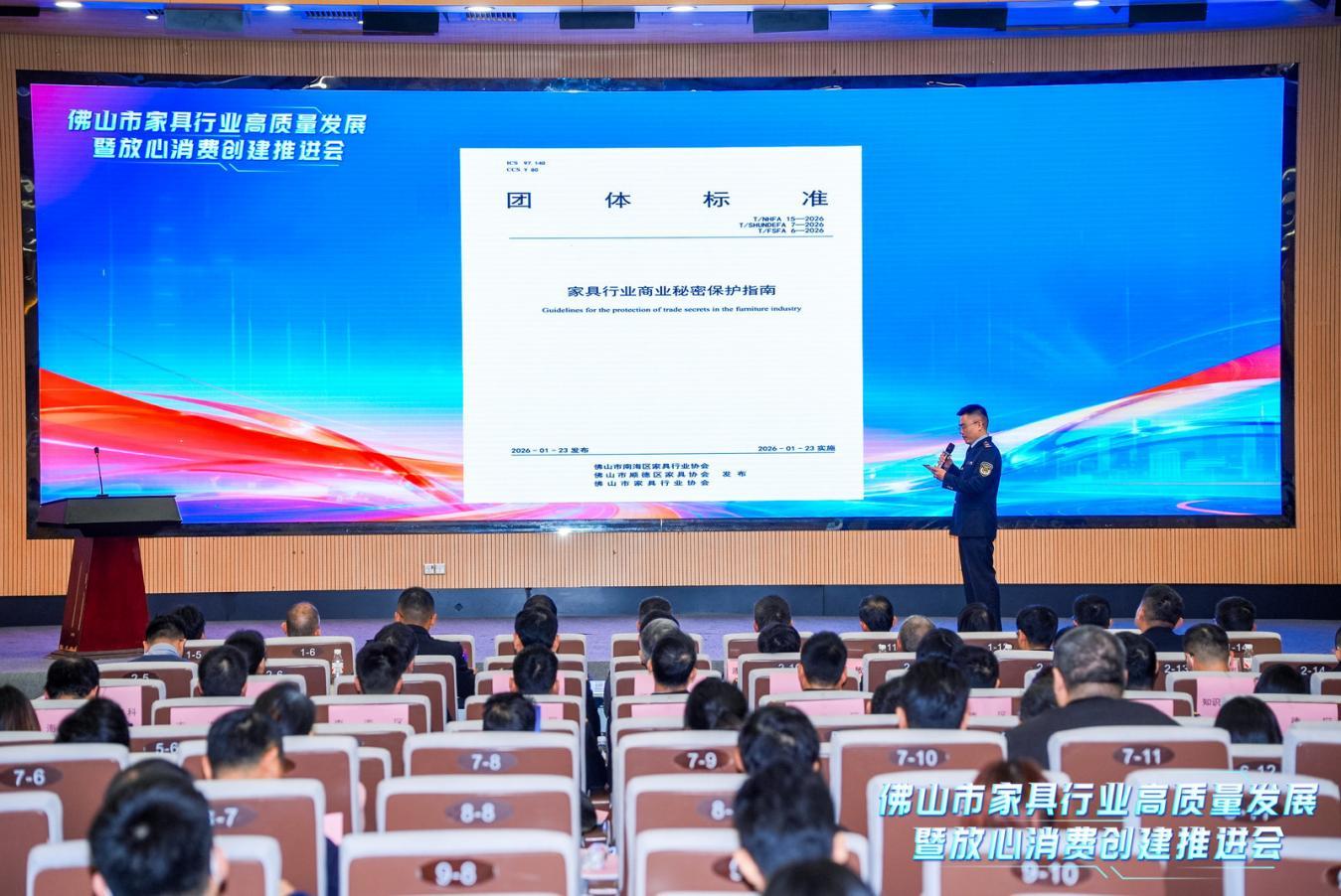 为破解行业发展痛点、规范经营秩序、提振消费信心,推动佛山家具行业高质量发展,1月27日,佛山市市场监督管理局组织召开佛山市家具行业高质量发展暨放心消费创建推进会,发布佛山家具系列团体标准,紧扣行业发展与消费需求,以标准立规、合规护航、诚信共建为核心,推动多项行业质量升级措施落地。