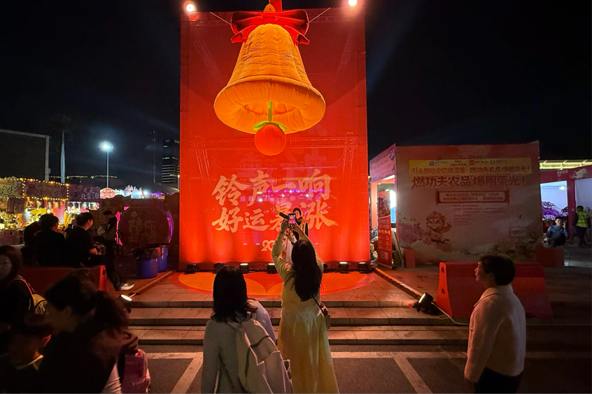 本届花市充分融入潮流与科技元素,今年在场景设计与活动策划上更是别出心裁。现场精心布置了“大桔门”“大铃铛”“马上有桔”“马上有花”“马上有福”等系列创意打卡点,并巧妙结合“拍马屁”“上上签”等谐音梗互动装置,满足年轻人拍照分享与情感表达需求。特设投影大道,以光影织就年桔、年花图案,让游客沉浸式体验“步步生吉”“步步生花”的新春美好意境。此外,花市期间,花卉世界展馆将同步举办佛山·第三届Comic World国风动漫展以及佛山首届AI智能机器人科技大会,实现传统年俗与潮流科技的有机碰撞。