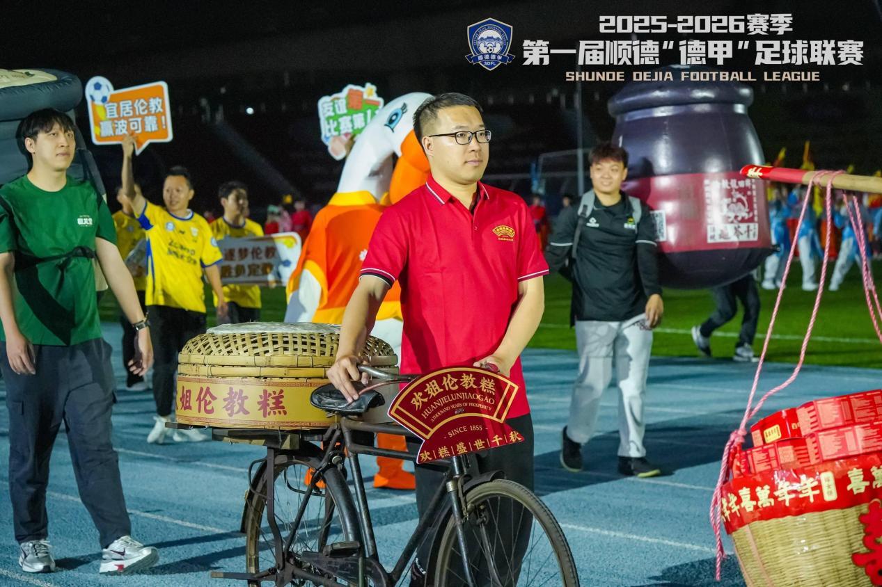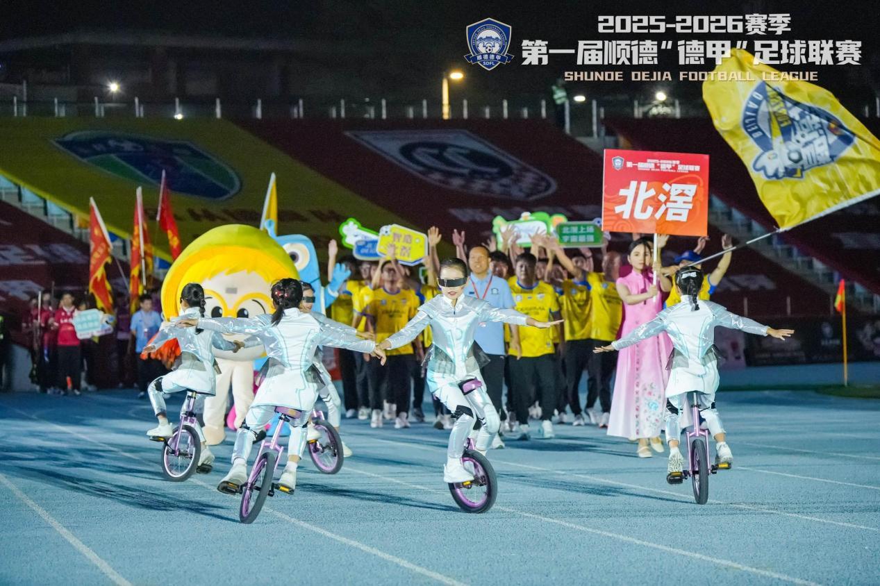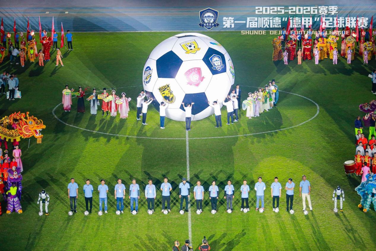 没有整齐划一的专业方阵,却有着最真实的生活气息。十个镇街,十支球队,十个鲜活的产业IP。每一队的队名并非营销噱头,而是顺德人骨子里的产业自信,他们骄傲地将自己的饭碗端上绿茵场,让顺德“德甲”的入场式,成为了一场别开生面的产业巡礼。