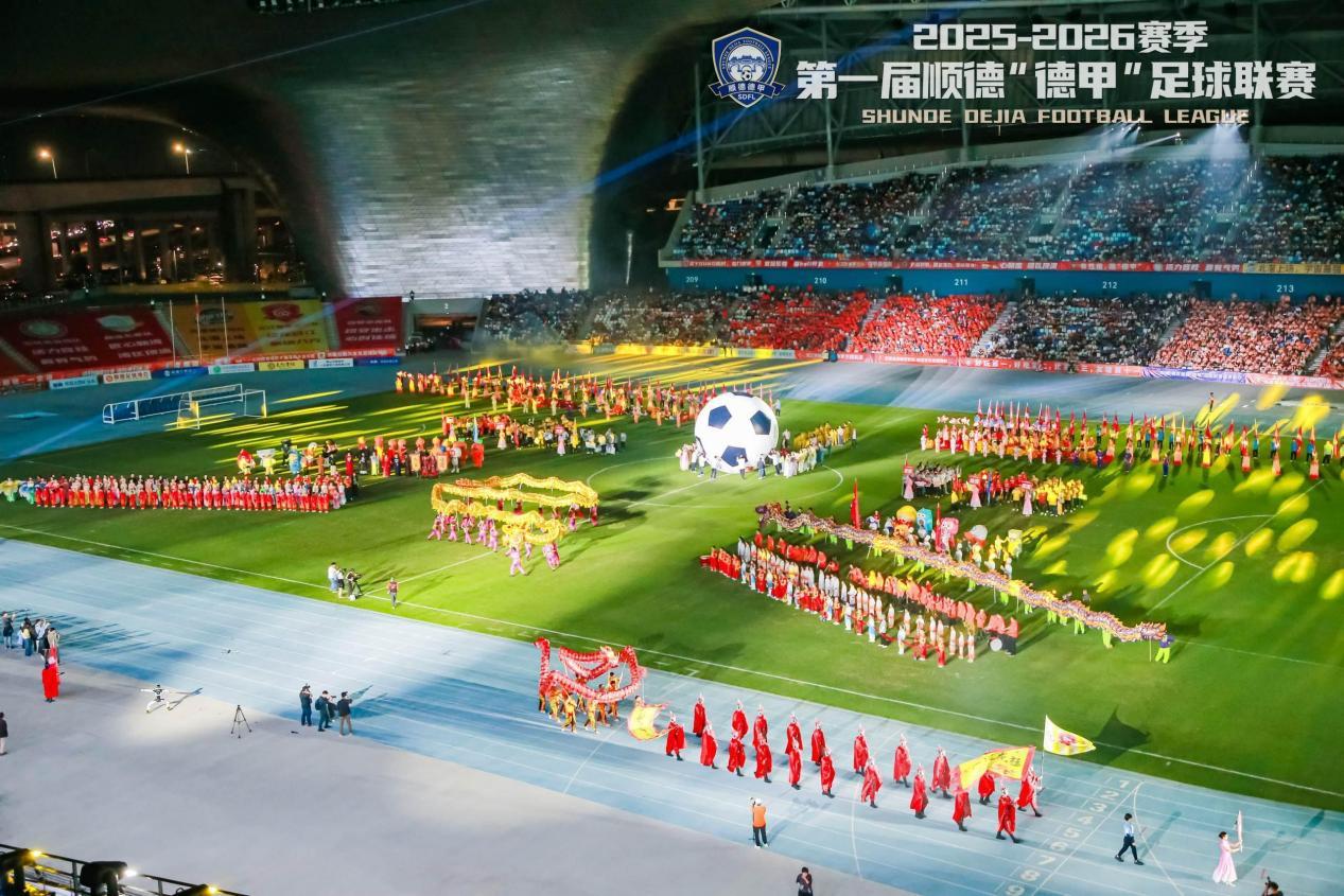 3月7日晚,2025-2026赛季第一届顺德“德甲”足球联赛在顺德德胜体育中心拉开帷幕。这不只是一项体育赛事,更是一场流动的产业博览会、一次活态的文化传承实验、一桌摆在大草坪上的美食盛宴。透过“德甲”这扇窗,我们得以窥见顺德如何用一颗足球,串联起十个镇街的产业雄心、文化基因与城市烟火。这场属于顺德人自己的足球狂欢,以“德甲”为名,却踢出了顺德这座城市最真实的底色以及每一个普通人的热爱。