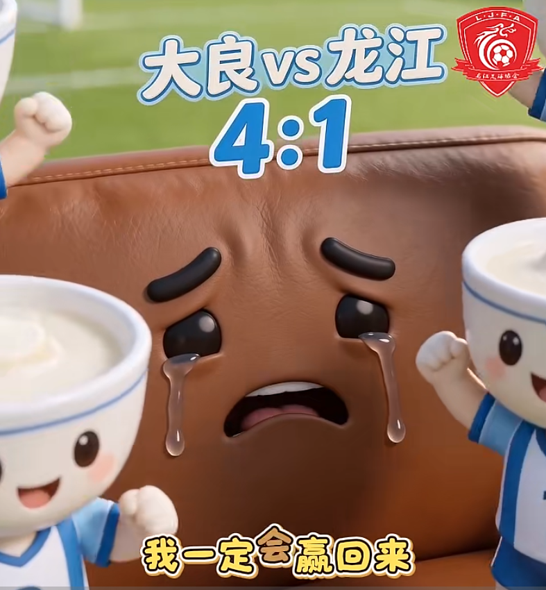 大良队4:1拿下揭幕战胜利。赛后,一条AI视频刷屏了:四碗“双皮奶”在“沙发”上尽情欢呼,而被“碾压”的龙江沙发自嘲回应——“我一定会赢回来的”。