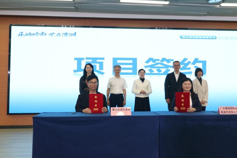 活动现场,广东潭洲国际会展演艺有限公司与佛山市演出行业协会、佛山市流行音乐协会签署项目合作协议,双方将在演艺项目引进、活动策划、资源整合等方面展开深度合作,推动高品质演出落地潭洲。