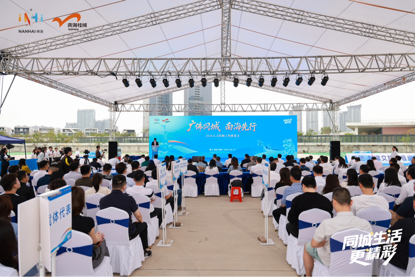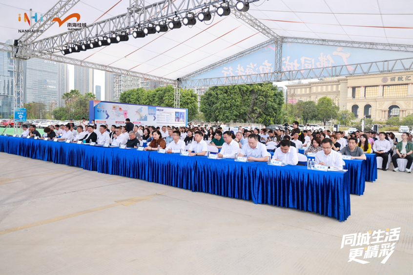 3月27日上午,“广佛同城·南海先行”2026人文桂城工作推进会在佛山市南海区桂城街道星驰·新濠文旅项目地块举行。佛山市、南海区相关领导,广州番禺、荔湾、白云、花都四区及相关镇街负责人,企业代表、专家学者及媒体代表出席活动。