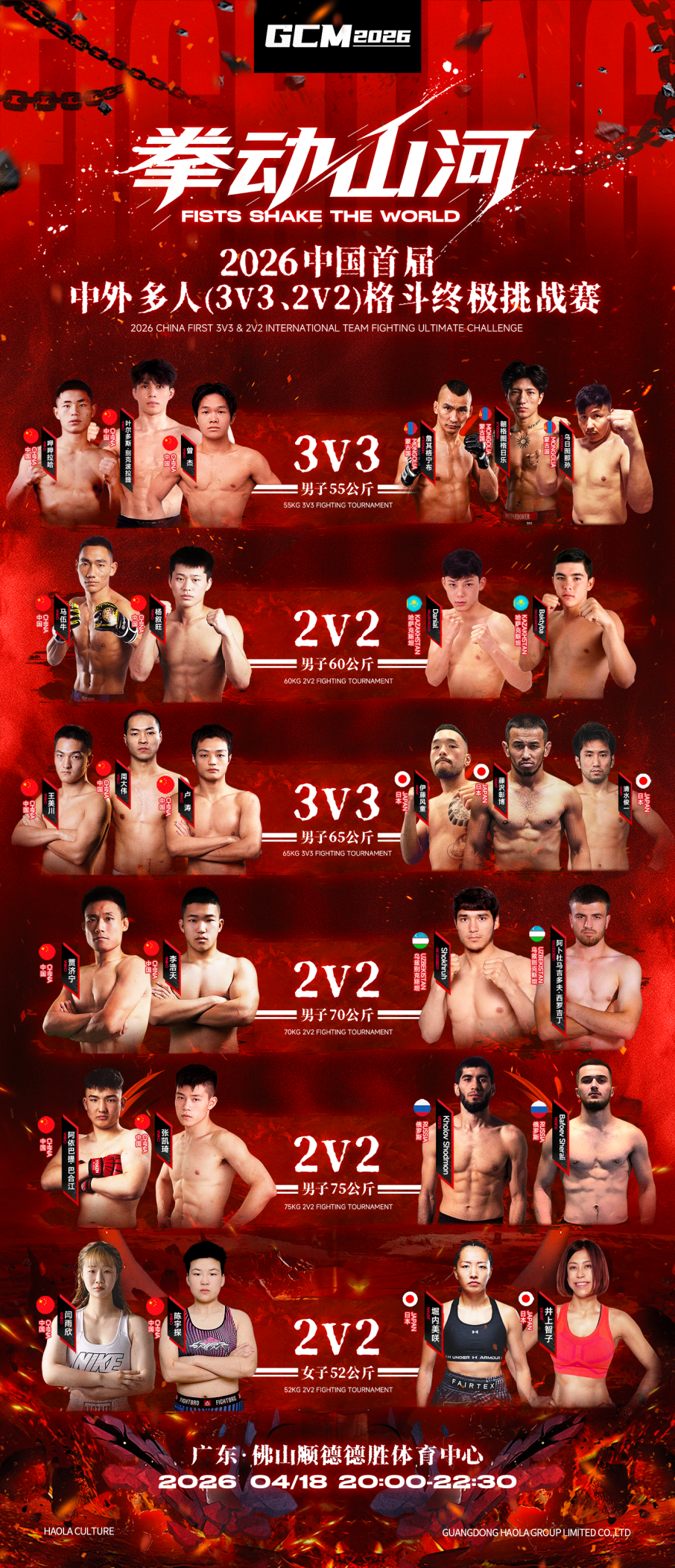作为国内首次引入的中外多人格斗顶级赛事,本次挑战赛以3V3、2V2团队对抗 为核心赛制,彻底颠覆格斗运动传统1V1单打独斗模式,成为赛事最亮眼的创新内核。赛事汇聚中国、俄罗斯、日本、蒙古、哈萨克斯坦、乌兹别克斯坦六国顶尖选手,28名中外格斗强者同台竞技,尽显赛事风采。
