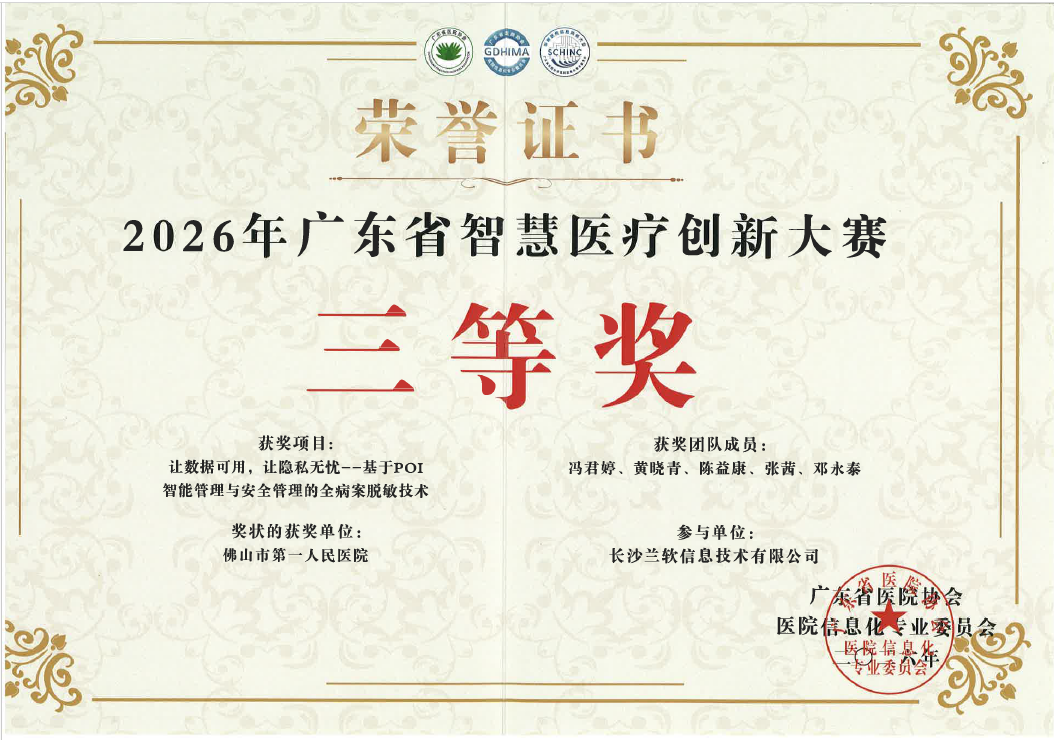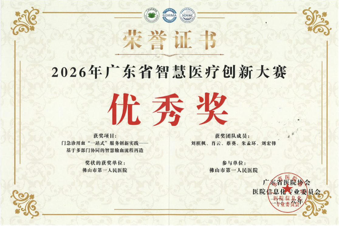近日,由广东省医院协会主办的“2026年广东省智慧医疗创新大赛”圆满落幕。佛山市第一人民医院申报的两项创新案例在全省三十余个优秀参赛项目中脱颖而出、双双获奖,分别斩获大赛三等奖与优秀奖,充分彰显了该院在智慧医疗建设领域的协同创新能力与扎实实践成效。