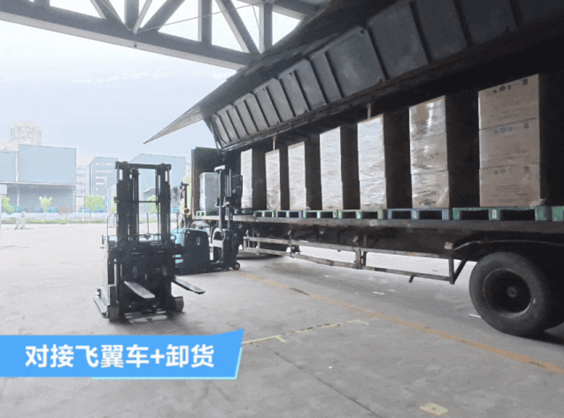 改造后,相关装卸环节预计节约人力33.3%,设备替换人工比率达57%,大幅降低人力成本投入。无人叉车自动化装卸作业可广泛适用于飞翼车、侧帘车、平板车等各种车型带板装卸场景,在节约人力的同时,有效提升作业效率和准确性,降低库内作业风险。